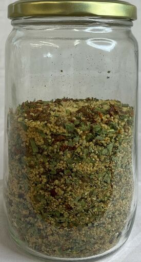 Couscous de blé complet* (88,7%), Tomates*, Poivrons* (3,6%), Menthe* (1,5%), Persil*, Citron* (1%). *Ingrédients issus de l'agriculture biologique.