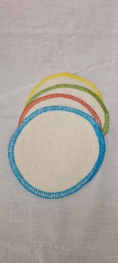 Lavables et colorés.100 % coton bio, teinture écologique. Diamètre : 9 cm.