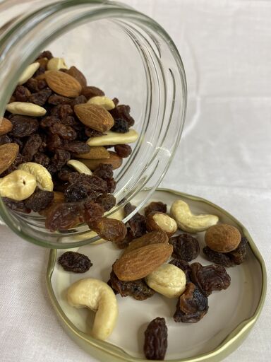 Raisins secs sultanine, amandes entières, noisettes,noix de cajou et amandes blanches entières