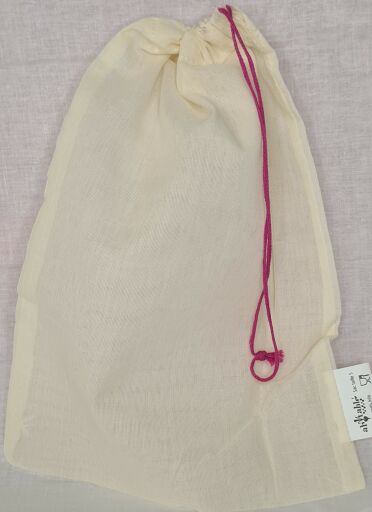 Alternative durable aux sacs jetables (plastique ou papier), les sacs en coton bio sont confectionnés dans une petite fabrique d’Inde, avec des garanties sociales et des traite-ments écologiques du textile.