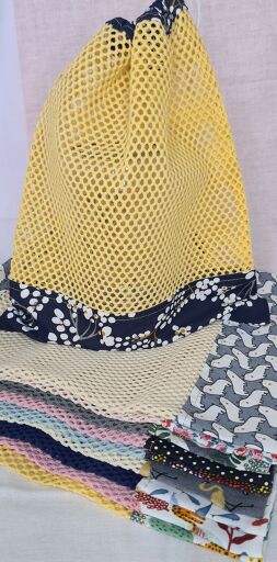Sacs à vrac pour remplacer les sachets plastiques ou papiers en faisant vos courses.Ils sont réalisés en coton oekotex et filet de coton bio naturel.