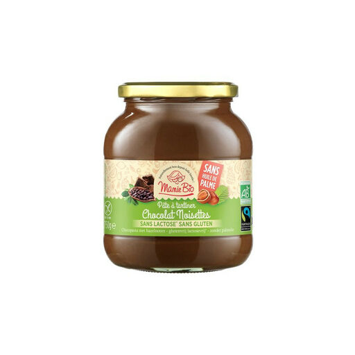 Cette pâte à tartiner chocolat noisette offre le goût et la texture d'une pâte à tartiner d'exception dans une recette sans gluten, sans lactose et sans huile de palme ! Produit certifié bio et issu du commerce équitable.