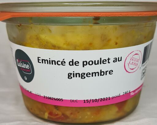 Emincé de poulet au gingembre. La cuisine de mon père c'est quoi ? Une cuisine facile, gourmande qui change de l'offre habituelle des déjeuners rapides, pour les gens qui en ont assez des sandwiches et de la malbouffe.On peut aussi emporter avec soi de jolis bocaux, qui seront à réchauffer au bureau ou à la maison. Prêts en deux ou trois minutes, les bons petits plats peuvent être dégustés dans leur contenant (le bocal). Plus de 80% des ingrédients sont d’origine locale et/ou issus de l’agriculture biologique.