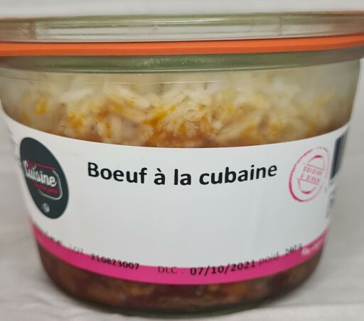 Boeuf à la Cubaine. La cuisine de mon père c'est quoi ? Une cuisine facile, gourmande qui change de l'offre habituelle des déjeuners rapides, pour les gens qui en ont assez des sandwiches et de la malbouffe.On peut aussi emporter avec soi de jolis bocaux, qui seront à réchauffer au bureau ou à la maison. Prêts en deux ou trois minutes, les bons petits plats peuvent être dégustés dans leur contenant (le bocal). Plus de 80% des ingrédients sont d’origine locale et/ou issus de l’agriculture biologique.