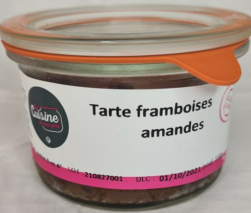 Tarte aux framboises et amandes. La cuisine de mon père c'est quoi ? Une cuisine facile, gourmande qui change de l'offre habituelle des déjeuners rapides, pour les gens qui en ont assez des sandwiches et de la malbouffe.On peut aussi emporter avec soi de jolis bocaux, qui seront à réchauffer au bureau ou à la maison. Prêts en deux ou trois minutes, les bons petits plats peuvent être dégustés dans leur contenant (le bocal). Plus de 80% des ingrédients sont d’origine locale et/ou issus de l’agriculture biologique.