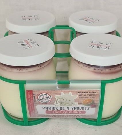 > [xtpl_parent>current_cat>produit_categorie_nom] > [produit_rayon_nom] > Panier de 4 yaourt, compotée de fruit Fraise