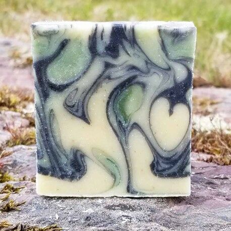A base d'huiles : olive*, coco*, beurre de karité brut*, tournesol*, colza**, eau, glycérine, farine de riz*, huile essentielle de citron*, anéthol de badiane, terre verte brentonico, fenouil, charbon végétal.