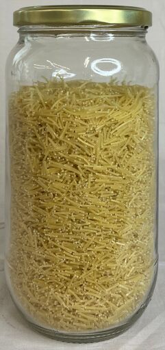 Pâtes alimentaires, en forme de fins vermicelles, séchées à basse température, à base de semoule de blé dur biologique de qualité supérieure (Triticum durum).